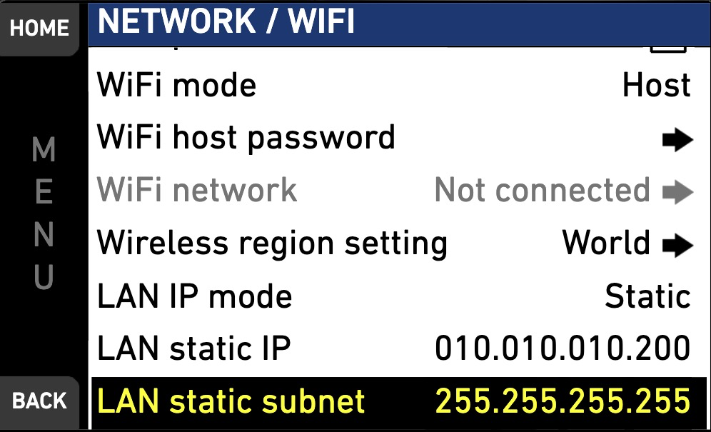 4. Set LAN static IP and LAN static subnet (see IP Addressing for more information):