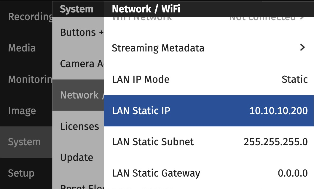 No additional configuration is required to utilize Arri's Web UI. It is in many ways inferior to Companion for day-to-day use, and we recommend utilizing the new application. In a Chromium-based browser (we recommend Vivaldi), you simply need to enter the camera's IP address that you set above.